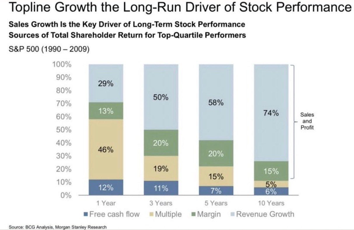 How has EPS compounded: The late, great John Bogle wrote about this frequently — over the long run, EPS growth tends to track pretty closely with stock performance. And no, this doesn’t contradict the earlier point. Unless there is a situation where costs are rising faster than revenue, growing revenue usually drives EPS up — one feeds into the other. Bogle’s broader point was that over long periods, valuation multiples matter less, and what really drives returns is how much a company has compounded its earnings per share.